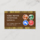 Une couverture en couches brunes est encapsulée par des couches de bois de bois sur les bords supérieur et inférieur de la carte. À la est un droit sont des outils handyman qui peuvent représenter certains des services que vous offrez. À sa gauche est le nom commercial que vous pouvez modifier en même temps que les coordonnées. Sur le dessus, dans un couvercle blanc, les détails de la carte sont sur la gauche avec un logo maison que vous pouvez utiliser, placé en haut. Il est suivi par votre nom prestigieux, les coordonnées et une option de slogan pour faire connaître vos services. Un design génial pour les entrepreneurs de construction et le bricoleur à utiliser.