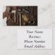 Ce carte de visite comporte une photographie des outils rustiques sur une surface en bois.