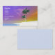 Un carte de visite tropical coloré avec mes oeuvres numériques de palmiers sur une plage blanche.