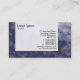 Modèle de carte de visite avec un panneau semi-transparent attrayant aménagé avec une main gauche de 3/8 pouces à gauche et en bas, avec une marge de 3/4 pouces plus large à droite. L'arrière - plan est décoré avec une texture abstraite ou une photo attrayante, qui peut également être remplacée par votre propre image si vous le souhaitez. Détails de l'entreprise sur l'avant avec nom et coordonnées sur l'arrière. Le design peut également être customisé. Le logo carré utilisé dans ce design est tiré de l'une des polices d'image utiles de Zazzle, il peut être conservé comme une fonction de style de logo décoratif, remplacer par un autre symbole ou votre propre logo.