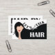 Creative Bold Minimaliste "Let's Talk Hair" Carte de visite de la liste de cheveux avec illustration du modèle de cheveux noirs, des chansons, le style de police de vague et le code QR. Customisez À Votre Intérêt.