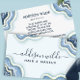 Blue Parties scintillant Agate Geode Luxe Chic Carte de visite. Les icônes des médias sociaux à l'arrière. Parfait pour les maquilleurs, coiffeurs, cosmétologues, et plus encore !