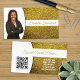 Une fausse parties scintillant jaune doré démarre l'arrière - plan de ce design carte de visite avec un espace réservé photo à gauche avec le nom du modèle à droite. Le dos comprend une conception coordonnée et des couleurs avec des champs de texte pour le métier ou le nom commercial et des détails. Remplacez la photo de l'espace réservé par votre photo au format vertical et votre code QR à l'arrière. Remplissez les champs du modèle ou cliquez sur customiser pour sélectionner un style de police, une taille et une couleur que vous souhaitez.La photo de l'espace réservé est fournie par pixabay.com.