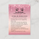 Cette conception moderne et sophistiquée de carte de suivi comprend une illustration glamour et minimaliste des cils d'une femme sur un magnifique PInk Parties scintillant Drips et un arrière - plan hologaphic avec nom ou nom d'entreprise et titre et espace pour l'enseignement de suivi.
