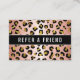 Carte REFERRAL moderne, parties scintillant girly animalier avec image numérique de noir et or empreinte de léopard parties scintillant sur un pli rose faux métallique. Superposition à bande noire. Un coupon de réduction moderne et tendance, parfait pour les studios de danse, les spas, les cosmétologistes, les esthéticiens, les boutiques, les designers, les consultants en cheveux et beauté, les deejays, les organisateurs d'événements et les manicuristes. Si vous êtes une femme patron cette carte est parfait pour attirer de nouveaux clients! Remarque : l'or est un effet imprimé, aucune parties scintillant sur la carte.