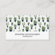 Cartes de visite à la saveur occidentale rustique. Conçu avec un tas de cactus verts mignons dans un motif extensible. Plus précisément, des cactus épineux de couleur verte, de toutes sortes de formes et de tailles, chacun assis dans son propre pot de fleurs bleu foncé. Des petits triangles décoratifs entre eux. Illustration de fantaisie.