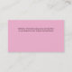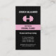 Un carte de visite graphiquement audacieux pour un entraîneur, un propriétaire de gymnase ou un entraîneur personnel avec un talent féminin. Une silhouette d'une haltère rose lumineuse se tient sur le fond noir riche de filet. Votre titre ou raison sociale se repose dans la barre rose saisissante dessous avec votre information de contact ci-dessous contre le noir riche. Ajoutez n'importe quelle information supplémentaire sur l'attention-obtention arrière. Disponible dans des couleurs alternatives avec les produits assortis.