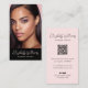 Carte De Visite Photo Blush Pink Script Black Social Icon QR Code