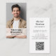 Éloignez-vous de la foule et faites une impression durable avec ce carte de visite moderne avec votre photo superposée avec votre nom en typographie audacieuse et tendance et votre titre en lettres simples propres. Au verso, personnalisez avec vos coordonnées et entrez votre adresse URL pour créer un code QR scannable connecté à votre site Web, portefeuille, profil de médias sociaux ou toute autre plate-forme qui présente votre travail, ce qui facilite l'exploration de votre expertise par les clients et les clients.