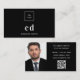 Carte De Visite Photo en noir blanc monogramme logo Qr code
