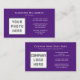 Cartes de visite personnalisables à deux faces horizontales : l'avant avec votre photo et vos informations, l'arrière avec le logo de l'entreprise et l'information. Modèle propre, simple, adapté aux entreprises ou aux entreprises grandes ou petites. Texte blanc sur arrière - plan violet.