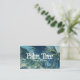 Ajoutez vos informations personnelles de contrat pour créer vos propres cartes de visite pour l'industrie touristique dans les zones tropicales ou les plages où il y a des palmiers. L'image montre des frondes de palmiers soufflant dans la brise. Les couleurs dominantes sont le bleu et le vert muet. Carte de visite photo.