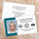 Faites une impression professionnelle avec ce design carte de visite contemporain. Personnalisez-le facilement avec votre photo, nom, titre, adresse et coordonnées. Un espace est prévu pour votre logo et deux logos d'accréditation. Tous les textes et images peuvent être customisés ou supprimés selon vos besoins. Couleurs imprimées : turquoise foncé, noir et blanc.