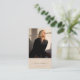 Ce carte de visite dispose d'une photo professionnelle pour tout titre professionnel avec un arrière - plan neutre en paille d'avoine. Parfait pour le titre comme agent immobilier, comptable, consultant. Le verso contient les informations de contact et le nom de l'entreprise. Vous pouvez customiser la taille du texte, la police, pour adapter votre style personnel. Remplacez cet exemple de photo de porte-place par votre propre carte de visite d'orientation portrait. Un arrière - plan rose pêche à l'avant et à l'arrière de la carte.