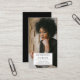 Ce carte de visite dispose d'un plan photo portrait adapté à de nombreux titres professionnels comme consultant, design d'intérieur, éditeur, consultant en ventes, immobilier, etc. Cette photo est un échantillon seulement. Remplacez l'espace réservé exemple par votre propre photo avant de retirer. Le verso contient les informations de contact et le nom de l'entreprise. Vous pouvez customiser la taille du texte, la police, pour adapter votre style personnel. Remplacez cet exemple de photo de porte-place par votre propre carte de visite d'orientation portrait. Noir au verso de la carte.