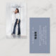 Ce carte de visite dispose d'une photo professionnelle contre un bleu pastel, pour n'importe quel titre professionnel. Parfait pour le titre comme agent immobilier, comptable, consultant. Le verso contient les informations de contact et le nom de l'entreprise. Vous pouvez customiser la taille du texte, la police, pour adapter votre style personnel. Remplacez cet exemple de photo de porte-place par votre propre carte de visite d'orientation portrait. Un arrière - plan rose pêche à l'avant et à l'arrière de la carte.