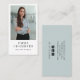 Ce carte de visite dispose d'un professionnel moderne photonotaire cartes de visite publics. adapté L'envers comprend les informations de contact et les poignées de médias sociaux. Vous pouvez customiser la taille du texte, la police, pour adapter votre style personnel. Remplacez cet exemple de photo de porte-place par votre propre carte de visite d'orientation portrait. Un arrière - plan bleu poussiéreux à l'avant et à l'arrière de la carte.