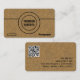Design simple et mignon pour carte de visite photographe. L'arrière - plan est marron kraft, ce qui rend la carte moderne et tendance. Le design contient l'illustration vectorielle de la caméra, dans l'objectif que vous ajoutez votre nom et spécialité à personnaliser dans un cadre blanc. Le code QR ajoute une touche intelligente et sophistiquée à la conception.