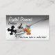 L'image unique sur ce carte de visite montre une fourchette avec des pièces de puzzle entre les dents. Le front modèle offre le titre et le slogan/la devise et le dos fournit d'autres informations. Un arrière - plan en dégradé noir se trouve à l'avant et un dégradé orange à l'arrière de la carte. Personnalisez les champs du modèle, supprimez le texte indésirable ou utilisez l'outil Modifier la conception pour modifier le style, la taille et la couleur de la police. Le concept de cette carte peut servir aux diététistes, nutritionnistes, gestionnaires de projets, conseillers de carrière et éventuellement votre carrière.