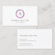 Modern business card featuring a simple yet professional design with your monogram inside of a pink and purple circle.