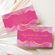 Cet élégant carte de visite moderne présente un design d'agate d'aquarelle rose orné d'une fausse feuille d'or sur un arrière - plan rose coordonné. Personnalisez-le avec votre nom en écriture manuscrite de couleur or et informations commerciales en sans serif font. Le design rose est répété au verso, avec espace pour vos coordonnées.