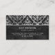 Carte de visite argenté noir de minuit de planificateur de mariage damassé de lueur vacillante. Merci pour le regard ! Pensez en dehors du paquet. poussez l'enveloppe, prenez-la au prochain niveau, frappez le fonctionnement au sol, pensez grand, commencez petit, soulevez la barre et ajoutez n'importe quel texte que vous aimez exprimer votre amour à votre aimé. Rappelez-vous que vous pouvez transférer cette conception à presque n'importe quel autre produit sur Zazzle.