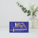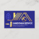 Une couverture bleu vif présente une conception créative de toiture en faux or. Ce design sur le toit abrite un logo de marteau d'or que vous pouvez utiliser. Près de la base de la carte, juste à côté de la brosse à rouleaux dorés tient votre nom d'entreprise et ses coordonnées.