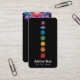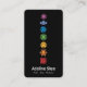 Design simple avec les points d'énergie chakra dans une ligne verticale sur l'avant de la carte, avec un mandala coloré sur le dos.