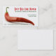 Un type rouge chaud criard fraîchement sélectionné long poivre de Cayenne. Annoncez votre ferme de poivre ou restaurant épicé de nourriture avec ce carte de visite de photo couleur.