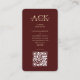Pompier moderne Secourt d'urgence en cas de catastrophe Noir Rouge Maroon Monogramme Nom initiales carte de visite avec code QR