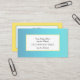 Note du créateur : pour moi, le jeu de couleurs rappelle de nombreux voyages d'enfance à Jersey Shore, du crabotage dans Seaside Heights aux week-ends dans les Wildwoods. De plus, cela me rappelle les graphiques sur l'une des chaînes de télévision que j'ai regardées grandir dans mon North Jersey natal à la fin des années 80 et au début des années 90. INSTRUCTIONS : Indiquez le prénom et le nom de famille (jusqu'à 2 lignes) et le titre d'occupation (jusqu'à 2 lignes, tous les casquettes) au premier plan. Indiquez l'adresse complète (jusqu'à 2 lignes), la ville, l'état/la province, le zip et le pays à l'arrière. Fournissez jusqu'à 2 URL de vos sites Web et numéro de téléphone.