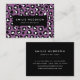 Cartes de visite élégants, élégants et sophistiqués avec taches de léopard et coeurs de couleur violet et noir. Design moderne et tendance, parfait pour les amateurs de poster de animal.
