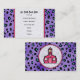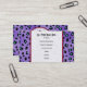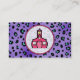 Un carte de visite comportant un arrière - plan pourpre d'empreinte de léopard avec l'équilibre rose. Texte noir au-dessus de blanc pur. Personnalisez avec votre information. Caractéristiques de bord opposé assortissant l'arrière - plan d'empreinte de léopard. Le logo de l'école rose à l'intérieur du cercle a formé le cadre rose.