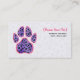 Un carte de visite comportant un empreinte de patte pourpre d'empreinte de léopard sur l'avant. L'arrière est empreinte de léopard. Personnalisez le texte sur l'avant et le dos avec votre information.