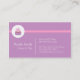 Laissez une impression avec des clients avec ce carte de visite élégant, élégant, doux et moderne de boulangerie dans la palette de couleur de rose féminin et du pourpre. La conception a 3 cercles chacun avec un article de cuisson qui inclut une mitaine rouge de four, un petit gâteau de regard délicieux avec le givrage rose décoré de mini coeurs et un bol mélangeur avec battent. Perfectionnez pour des boulangeries, des chefs de pâtisserie, des décorateurs de gâteau, des cafés, des café-restaurants, des entreprises de confiserie, des studios de cuisson, cuisson et des maîtres d'école et plus de cuisine. Personnalisez facilement avec des détails d'affaires.