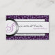 Favorisez vos affaires de boulangerie de petit gâteau de café avec ces pourpre audacieux, empreinte de léopard noir et blanc de monogramme et carte de visite modernes et élégants de diamants. Ce carte de visite comporte un arrière - plan déchiqueté d'impression de léopard (animal) avec un cadre de cercle avec une lettre de monogramme à l'intérieur. La conception a posé des rectangles montrant votre information d'affaires. Ce carte de visite audacieux, moderne, et élégant est également un grand match pour des traiteurs, des cafés, des boulangeries, des entreprises de petit gâteau, des planificateurs de partie, des boulangers, des chefs, des affaires fournissant des pâtisseries aux détaillants, des wedding planners, des dessinateurs d'intérieurs, des couturiers, des spas, des salons, des techniciens de clou, des manucures, des estheticians, des esthéticiens, des magasins détaillants d'habillement, des magasins de bijoux, et plus. Conceptions de ©2011 Pam.