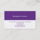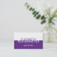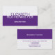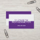 Simple et moderne est le regard sur ce carte de visite. Des affaires ou un nom personnel sont dominant sur l'avant de la carte avec l'information de contact principale, un numéro de téléphone ou site Web, frappant hors du panneau pourpre ci-dessous. Ajoutez une description des services sur l'inverse au dessus avec toute l'information de contact imprimant ci-dessous dans la violette. Disponible dans des couleurs alternatives.