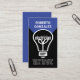 Dans l'obscurité de la nuit, une ampoule à filament "électricien" brille sur notre prestigieux nom au sommet. Vers la base se trouvent les coordonnées. Au-dessus, dans une couverture bleue, se trouve le logo "power plug-sprocket" que vous pouvez utiliser. Ceci est suivi par les coordonnées et une option de légende de slogan pour faire connaître vos services. C'est une excellente carte à utiliser par les électriciens. #électricien #entrepreneur en électricité #électricité #réparations électriques #ampoule électrique #câblage électrique #services électriques #ingénieur en électricité #éclairage #zazzlemade