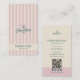 Carte De Visite Preppy Pink Stripes Green Bakery Logo QR Code