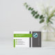 Une conception simple portée sur les colonnes rectangulaires. En vert la colonne repose votre nom et fonction. Directement ci-dessous, il y a un rectangle vert vertical mince qui accompagne les boutons sociaux verts d'icône pour vos détails de carte. Au mur droit, il y a un grand rectangle gris qui a le logo et sa raison sociale inversée par le côté. Au verso, la carte a deux parties. Le morceau blanc supérieur a le logo et la raison sociale. La colonne verte directement sous a les détails d'affaires avec son option de tagline de slogan. Si vous décidez de télécharger une photo au lieu d'un logo, les dimensions sont le pix 1.000 x 1.000. Cette conception a un bon nombre d'option qui vous permet de customiser la carte. Cette carte serait grande particulièrement pour des têtes des sociétés ou du patron prochain dans vous.