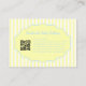 Pastel trendy yellow blue bow stripe pattern business card designed for pretty, girly, feminine brands. Perfect for handmade baby clothing boutiques, makeup artists, and small business owners. Features stylish QR code integration with a soft vintage-inspired aesthetic for modern, eye-catching branding.