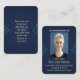 Carte De Visite Prière photo commémorative Elegant Bleu & Or