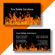 Image de carte de visite parfaite pour une société de produits et services de sécurité incendie présentée dans un design organisé avec feu flamboyant sur le bas de l'avant de la voiture et sur le dos de la carte avec le contenu de sécurité de l'industrie à customiser.