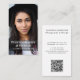 Carte de visite moderne avec votre photo superposée avec votre nom et votre profession en gras typographie blanche. À l'arrière, personnalisez avec vos coordonnées et entrez une adresse de site Web pour créer un code QR scannable connecté à votre site Web, portefeuille, profil de médias sociaux, ou toute autre plate-forme en ligne qui présente votre travail, ce qui permet aux clients et aux clients d'explorer facilement votre expertise.