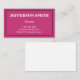 Ces caractéristiques de conception simples, professionnelles, et de base de carte de visite un arrière - plan magenta, et une frontière noire à deux lignes. Il pourrait être employé par un professionnel tel qu'un notaire, un paralégal, un notaire ou une mandataire. Les détails de nom, de profession et de contact peuvent être personnalisés.