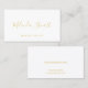 Carte de visite moderne professionnel blanc et or avec nom en or style de police de calligraphie moderne et détails en or style de police sans serif moderne sur arrière - plan blanc. Parfait pour les maquilleurs, coiffeurs, concepteurs et de nombreuses autres professions. Remarque : Les détails du papier sont simulés dans l'illustration. Il n'y aura pas de métal sur ce produit.