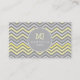 Le motif à la mode et contemporain, de chevron dans des gris doux et les jaunes pâles fait une conception moderne pour n'importe quel professionnel ou consultant en matière de service. Carte de visite parfait pour un organisateur, un dessinateur d'intérieurs, un esthéticien ou tout autre consultant en matière de beauté. Les initiales et le nom chics sur l'avant sont couleur coordonnée et il y a pièce pour toute votre information de contact sur le dos.