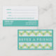 Carte de visite de référence de dentiste. Carte de visite fait sur commande de référence avec une promotion de référence pour récompenser vos clients pour se référer leurs amis. La conception a un motif géométrique et un modèle de couleurs moderne. Contactez-moi pour des couleurs supplémentaires. Grand pour lancer votre bureau de dentiste et pour augmenter votre liste de client. Entrez dans votre propres promotion, dénis de responsabilité et information de l'entreprise. Perfectionnez pour le bureau d'orthodontiste, le bureau d'implant dentaire, les soins dentaires pédiatriques, ou le cabinet privé.