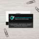 vecteur silhouette du pistolet d'isolation en mousse de pulvérisation avec pulvérisation d'isolation blanche. Graphique au-dessus du dégradé bleu-vert. Arrière - plan carte de visite noir. Le carte de visite comprend également les services énumérés.