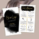 Assurez-vous que vos clients connaissent la meilleure façon de soigner, laver et de styliser leurs extensions de cheveux avec cette carte d'instructions pour la prise en charge de cheveux noir et or. Cette carte de coiffure comprend des icônes de soins capillaires, des polices élégantes en faux or et de l'espace pour votre logo salon de coiffure. Offrez à vos clients ce guide de post-traitement élégant en aquarelle noire et en parties scintillant d'or après traitement après avoir reçu des extensions de tissu ou de bande afin qu'ils puissent garder leurs cheveux en apparence bon pour plus longtemps.